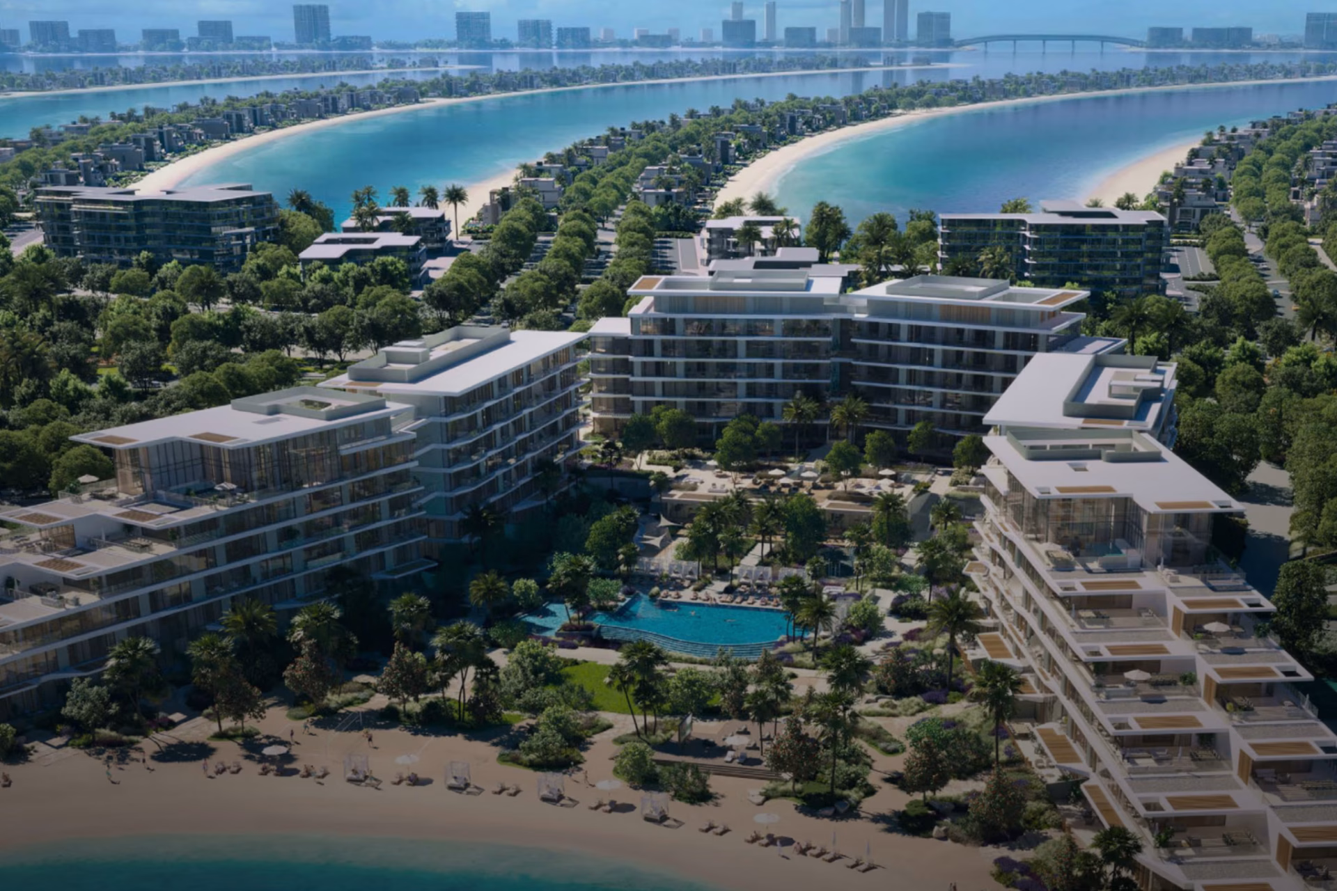 Palm Central – Private Residences offers an exclusive collection of 212 resort-style homes perfectly positioned at the heart of Palm Jebel Ali, between Fronds M and N. Three architecturally elegant, stepped buildings frame panoramic views of the cove and horizon, while every residence enjoys direct beach access and world-class amenities designed for private resort living. The collection features 1–5 bedroom apartments, duplex townhouses, and signature penthouses, each boasting expansive terraces and private pools that blend indoor comfort with outdoor luxury.
